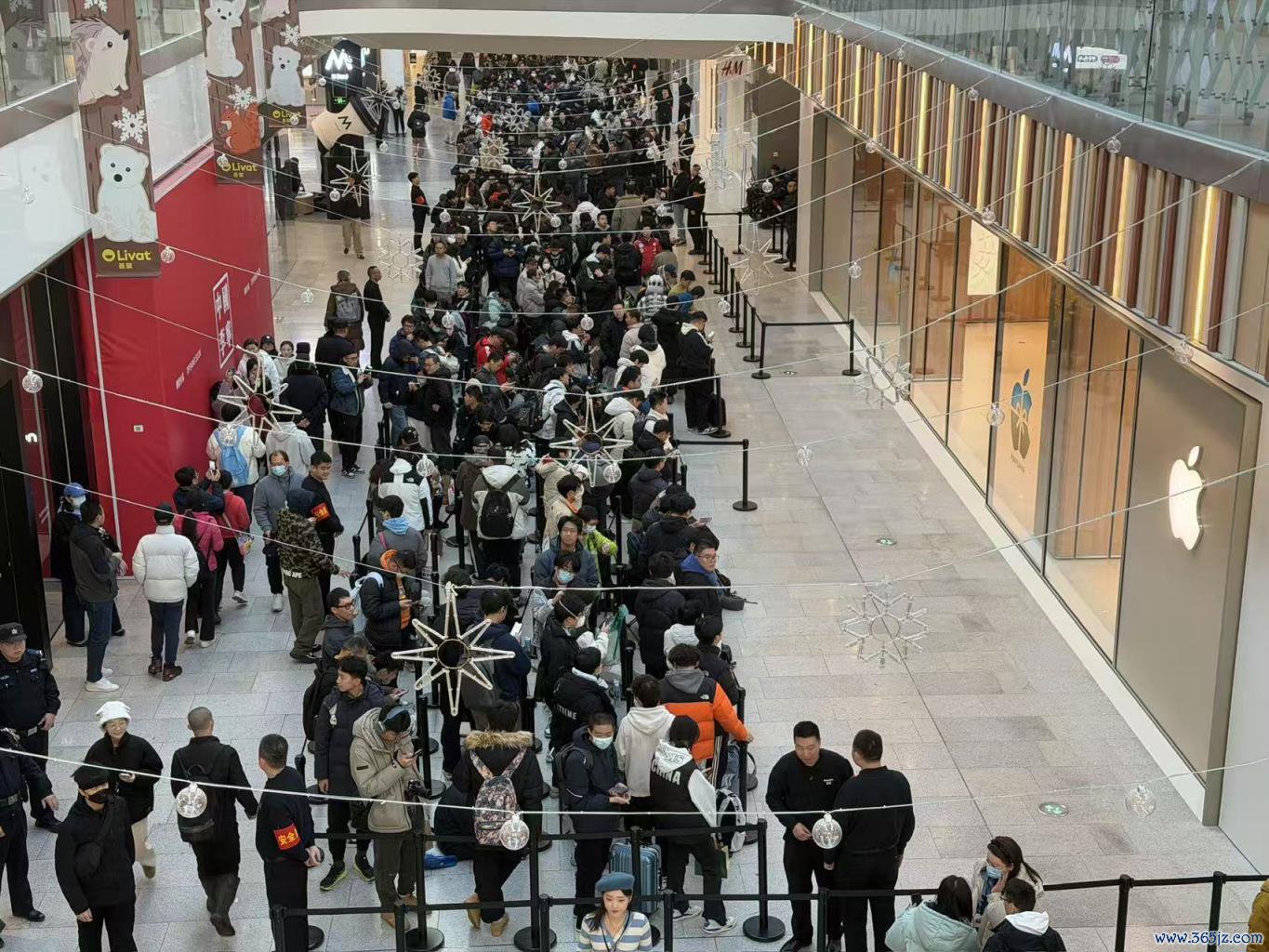 12月6日上昼九点半,大兴荟聚一层中庭已排起逶迤长龙。十点整,苹果店门开启,首批主顾慷慨涌入。他们不仅为最新产物而来,也为领取一份尽头的开幕回来——定制帆布袋和贴纸,为新店开业增添了一份典礼感。